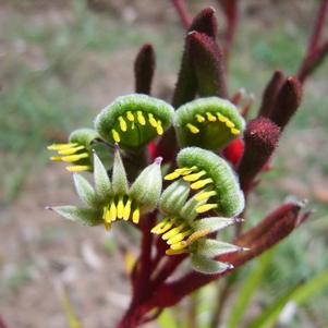 - Hybrid Kangaroo Paw. Hybrids between A. flavidus and others with typical Iris-like foliage and Crocosmia-like inflorescences of furry flowers in a range of colors.