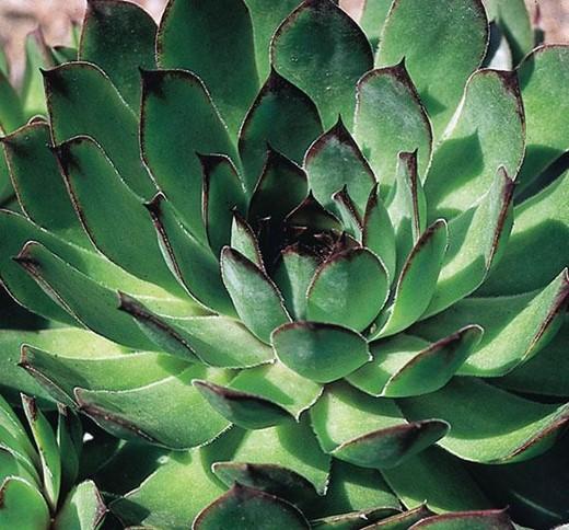 - One of the few sempervivums that thrives in the heat and humidity 'Carmen' forms beautiful evergreen rosettes of succulent lettuce-green, maroon-tipped leaves, which turn purple in winter. The rosettes develop by offsets into crowded, colorful, richly textured mats. In summer the older rosettes send out thick stalks bristling with stubby pointed leaves and topped with dense clusters of tightly packed pinkish white blooms. Rosettes die after flowering.